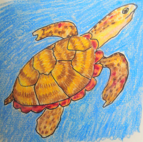 Turtle TIme December 24, 2015 This guy is a hawksbill turtle, who swam with us in Curaçao. Talk about happy juju. He's got it!